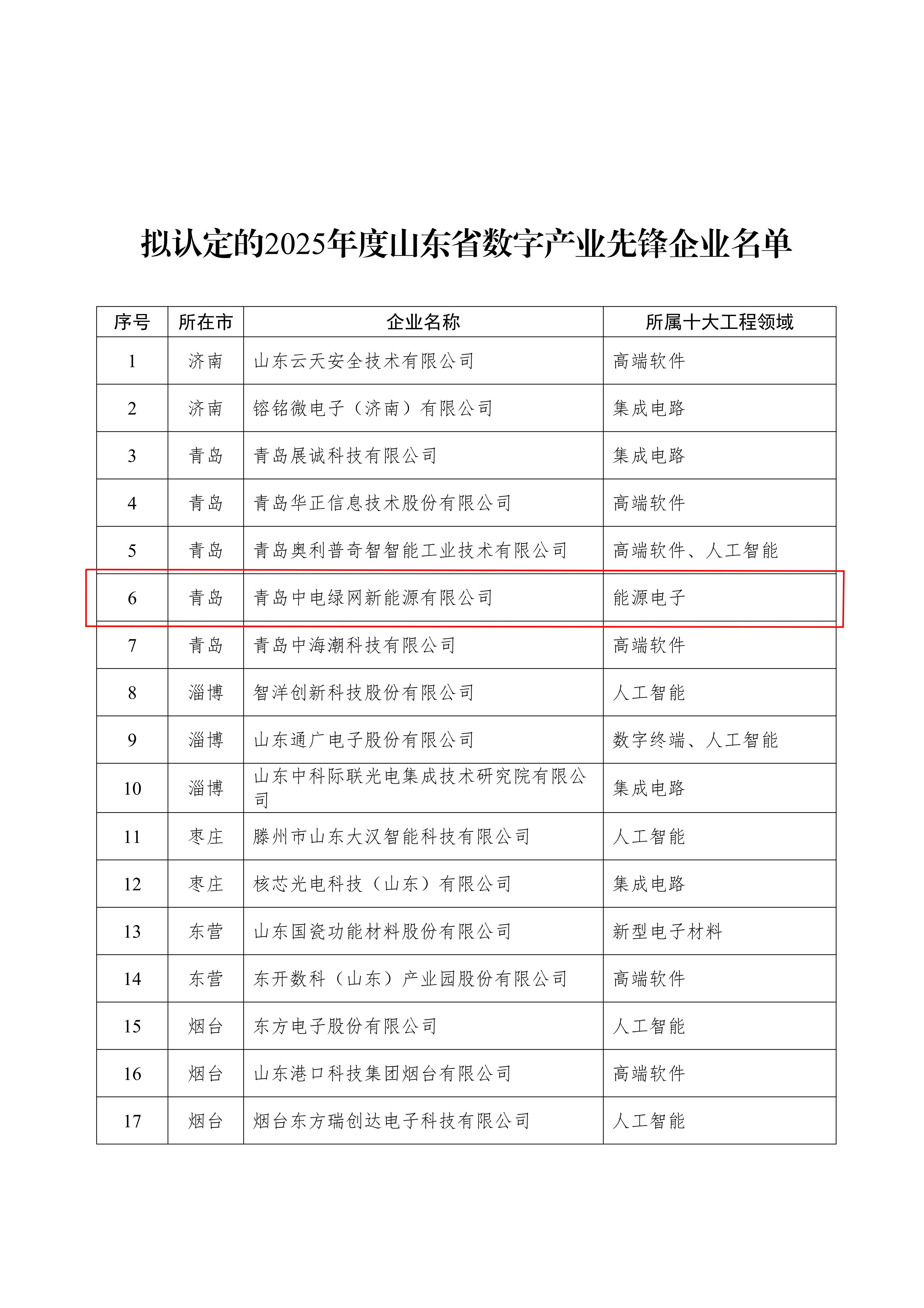 2025年8月25日,山東省工業和信息化廳公布“2025年度山東省數字產業先鋒企業”名單,全省共26家企業入選,青島中電綠網新能源有限公司位列其中。公司憑借在新型電力系統數字化、源網荷儲一體化及新能源微電網領域的創新成果,成為青島市唯一以“新能源+數字化”雙輪驅動獲此殊榮的企業。這一榮譽標志著公司在數字能源領域的技術創新與市場實踐再獲省級權威認可。